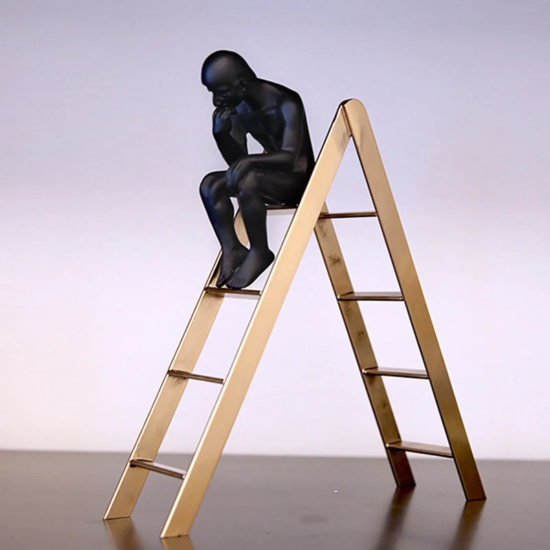 Product Name: Auguste Rodin Thinker escultura pensador clásico en la escalera estantería exhibidor decoración de hogar clásica hombre negro Metal artesanal