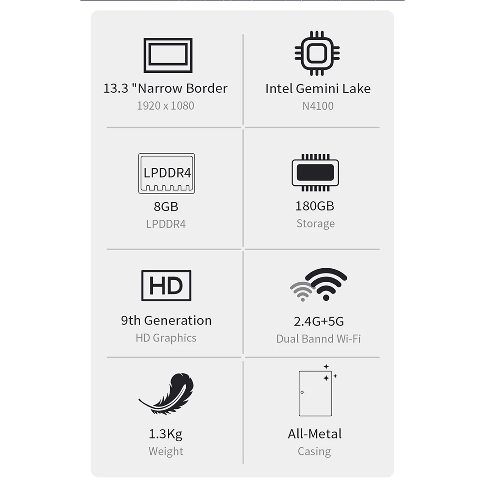 Product Name: Jersey nuevo EZbook X3 PRO portátil IPS pantalla de Metal delgado cuerpo portátil Intel lago Géminis N4100 8GB LPDDR4 180GB SSD 2,4G 5G WiFi