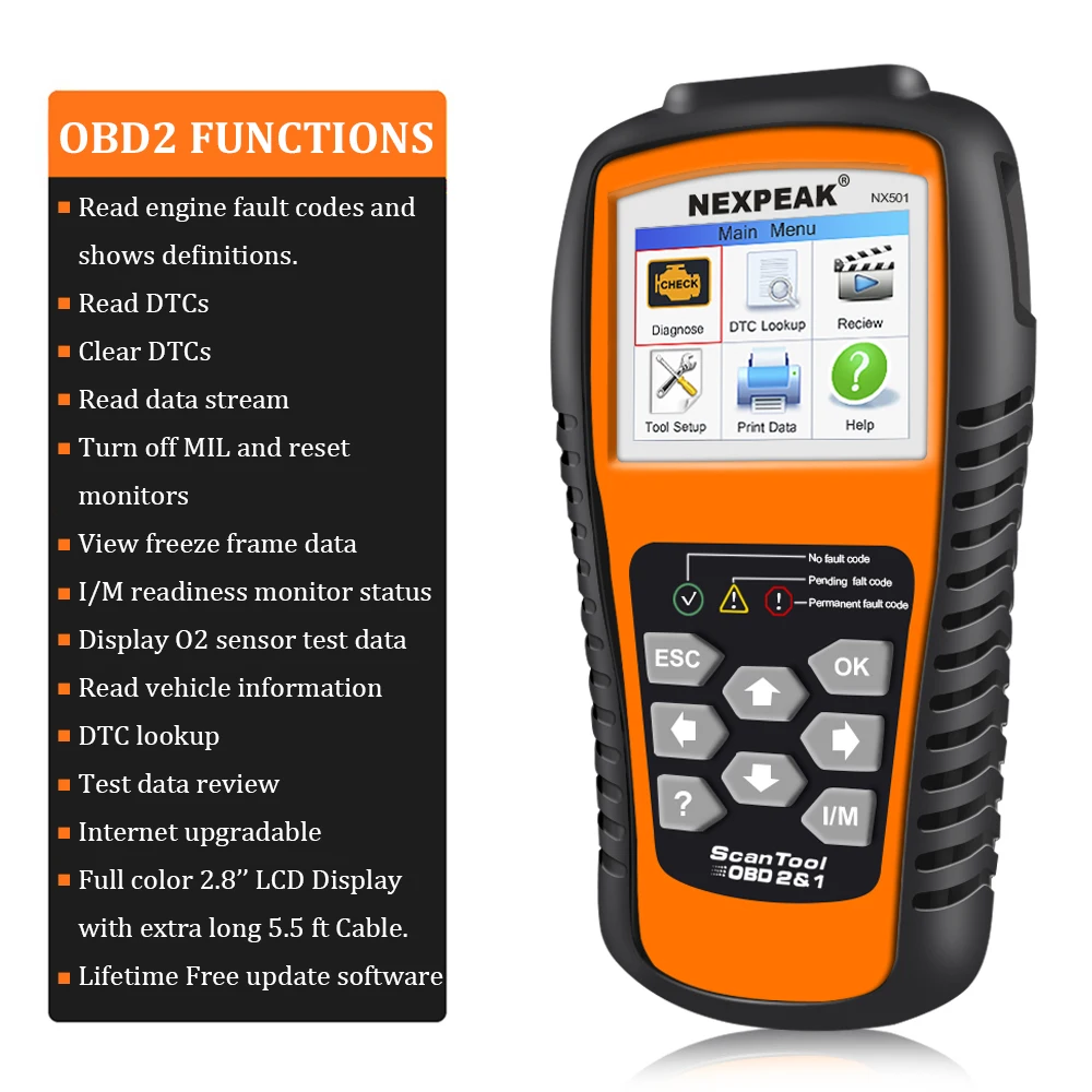 Special Offer 2019 nuevo escáner de coche OBD2 Full ODB 2 escáner de diagnóstico automático Nexpeak NX501 herramienta de diagnóstico automático ODB2 mejor que Launch CR5001 Discount 36% Today!