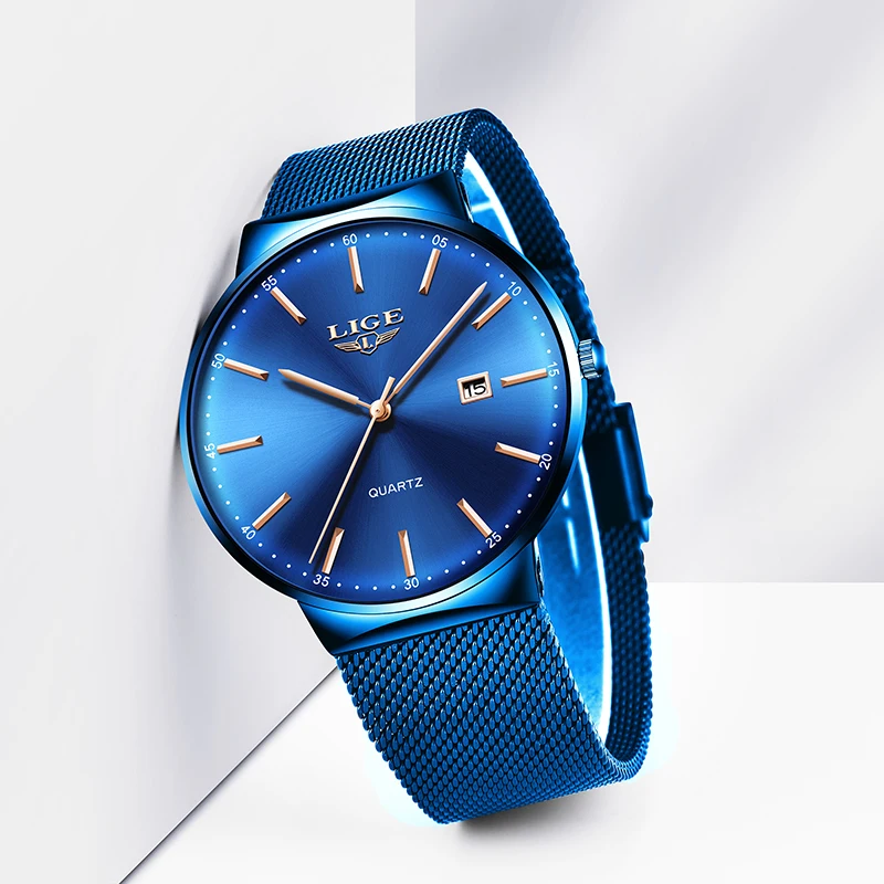 Special Offer Relojes LIGE para mujer marca superior de lujo reloj de cuarzo analógico para mujer malla azul completa de acero inoxidable RELOJ DE FECHA DE MODA esfera ultrafina Discount 45% Today!