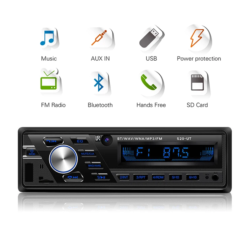 Product Name: Auto radio 12 V 24 V coche camión Radio Bluetooth 1din coche reproductor estéreo teléfono AUX ISO interfaz MP3 FM USB Radio Control remoto