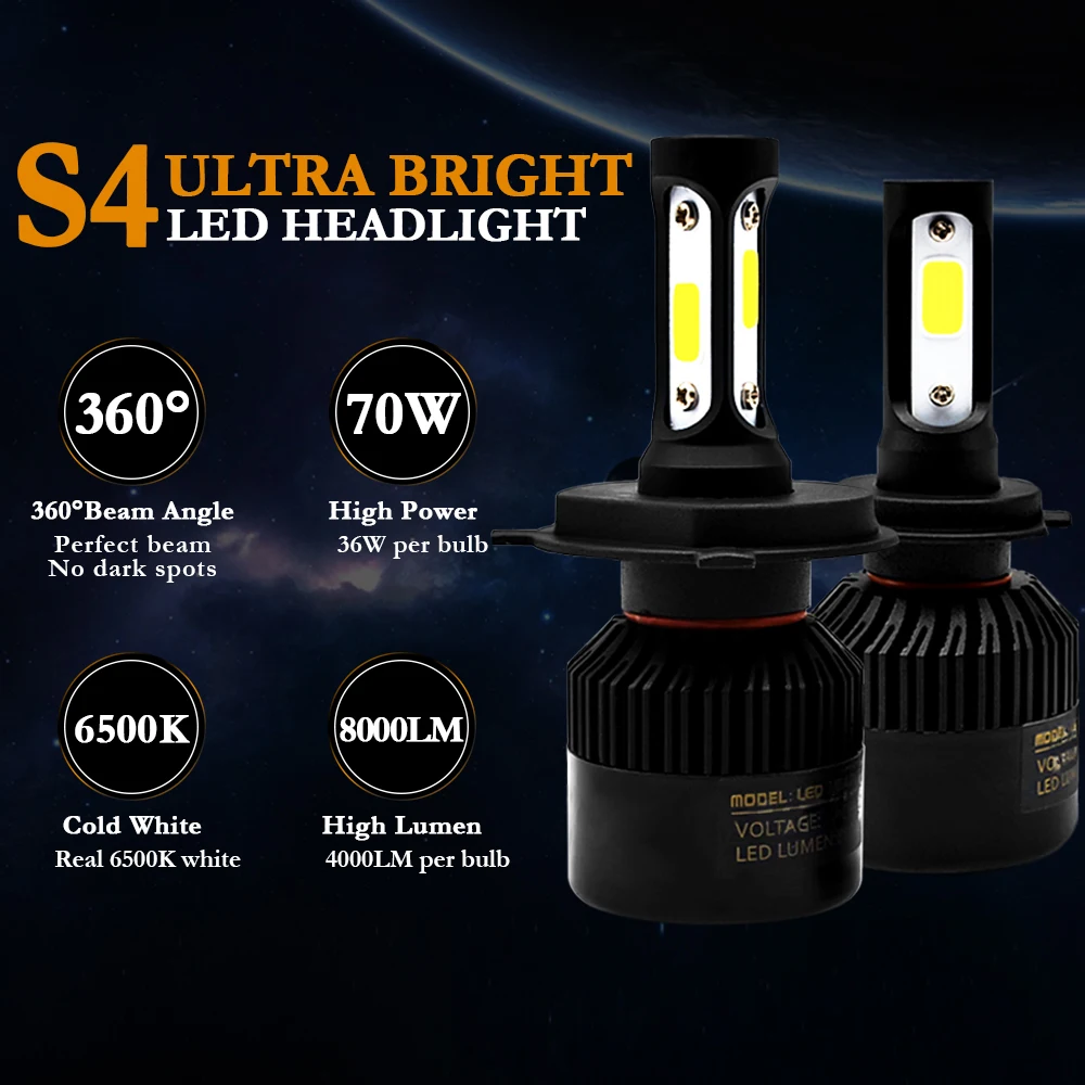 Product Name: 2 uds H1 LED H11 H7 H4 H3 HB4 HB3 H8 H27 9005 de 9006 bombillas de faros de automóvil 72W 8000LM luz del coche 6000k led automotivo DC12V 24V