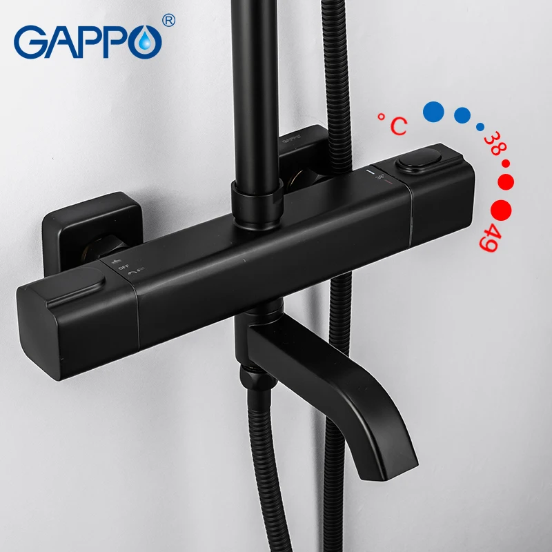 Product Name: Sistema de ducha termostático GAPPO mezclador frío caliente ducha baño grifo de latón bañera ducha conjunto mezclador termostático grifo negro