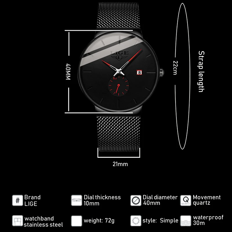 Product Name: 2019 relojes LIGE para hombre marca superior de lujo de moda reloj de pulsera para hombres reloj de cuarzo reloj masculino correa de malla ultrafina impermeable + caja