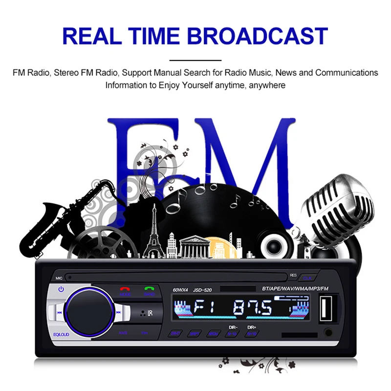 Product Name: TOSPRA reproductor Multimedia para coche Bluetooth Autoradio MP3 reproductor de música Radio estéreo para coche receptor de entrada Aux FM USB 12V en el salpicadero 1 din