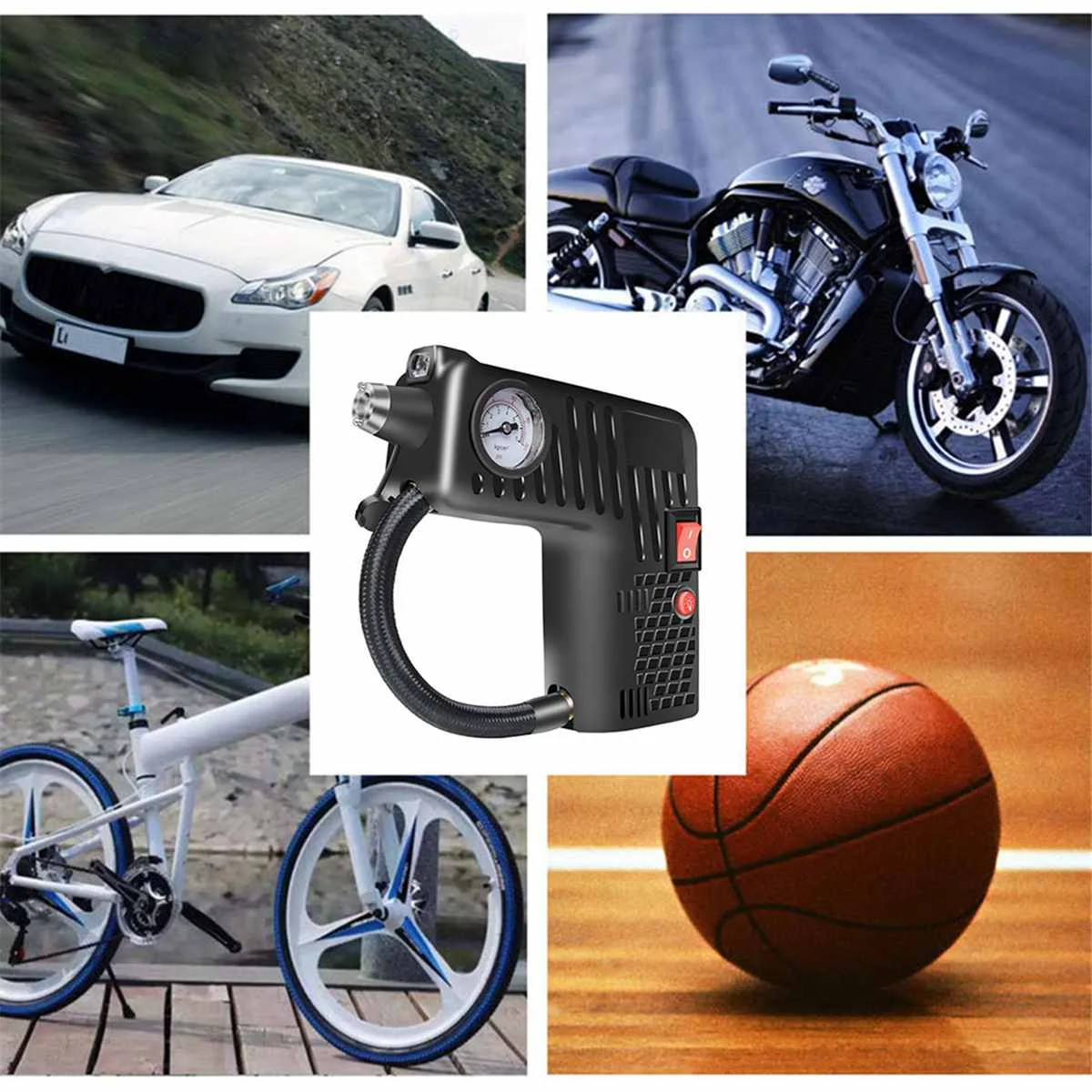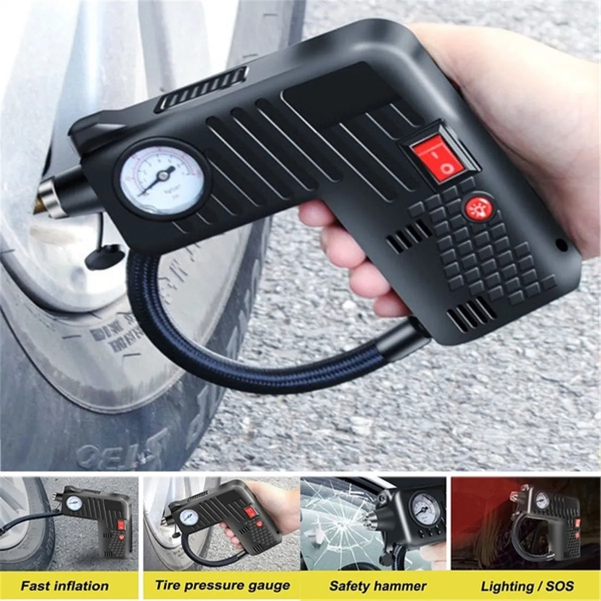 Product Name: 12V compresor de aire portátil de la bomba del compresor del martillo de seguridad del neumático del LED compresor inalámbrico para la bicicleta del coche eléctrico de la motocicleta