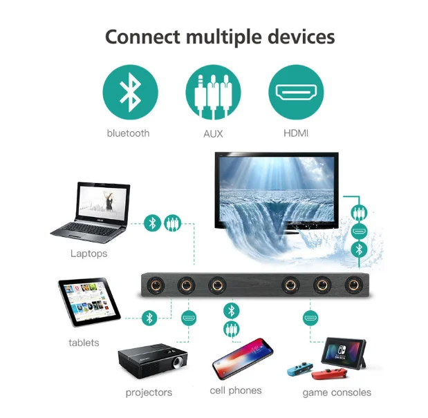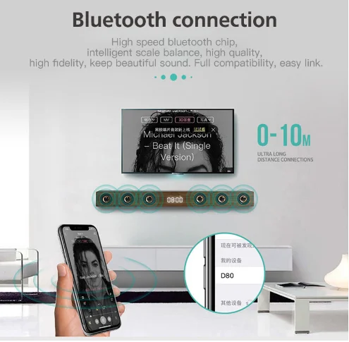 Product Name: Altavoces para cine en casa altavoz inalámbrico de 30w woofer TV Soundbar bluetooth con RCA HDMI Hifi sonido estéreo control remoto de madera