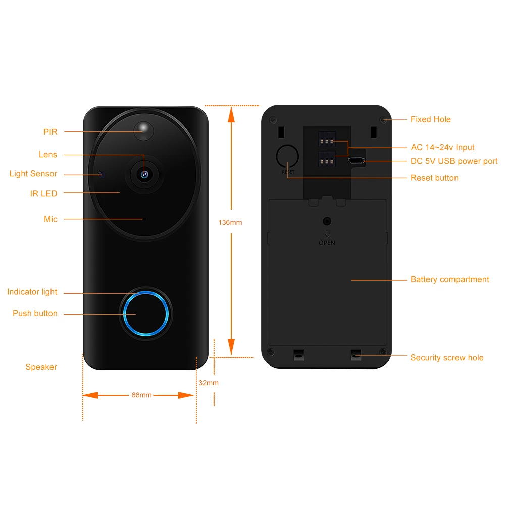 Product Name: Portero Tosee 1080P WiFi timbre cámara de seguridad inalámbrica Audio bidireccional con visión nocturna Video intercomunicador puerta teléfono