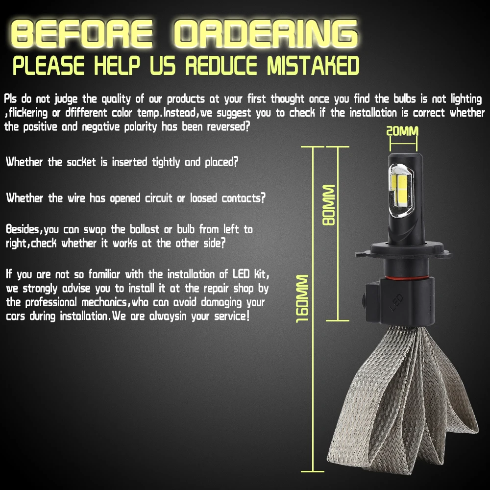 Product Name: S7 linterna del coche Kit h7 bombillas de luz LED para coche H4 LED H3 H11 H1 880, 9004, 9007, 9005, 9006 12V 55W 6000K 12000LM Luz de bulbo Auto