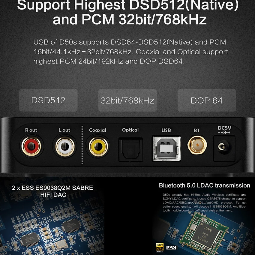 Special Offer TOPPING D50S CSR8675 Bluetooth 5,0 ES9038Q2M decodificación de AUDIO DAC USB XMOS XU208 DSD512 32Bit 768 Khz OPA1612 USB OPT coaxial de entrada Discount 0% Today!