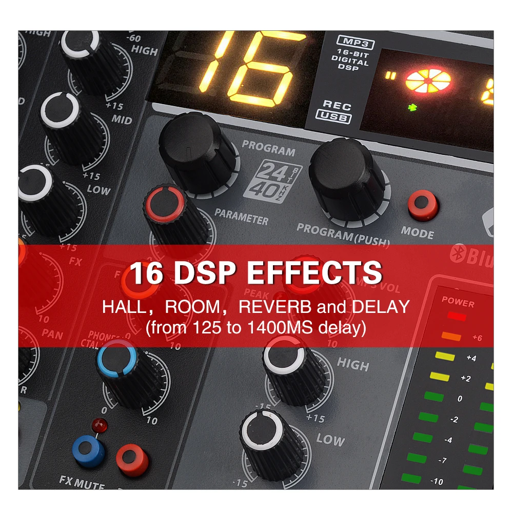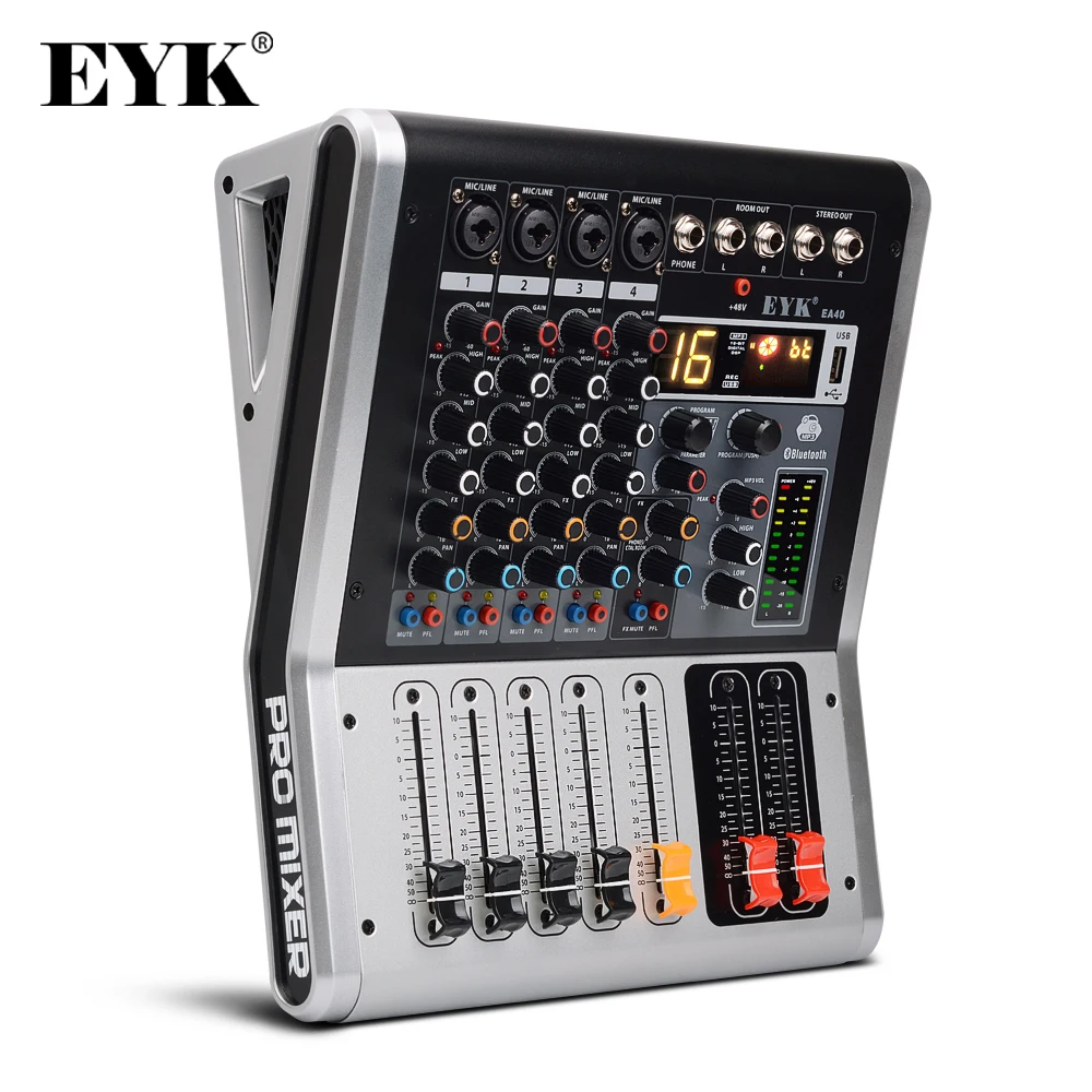 Product Name: EYK EA40 4 canales consola de mezcla con Mute y PFL interruptor Bluetooth registro 3 bandas 16 DSP efecto USB mezclador de Audio profesional DJ
