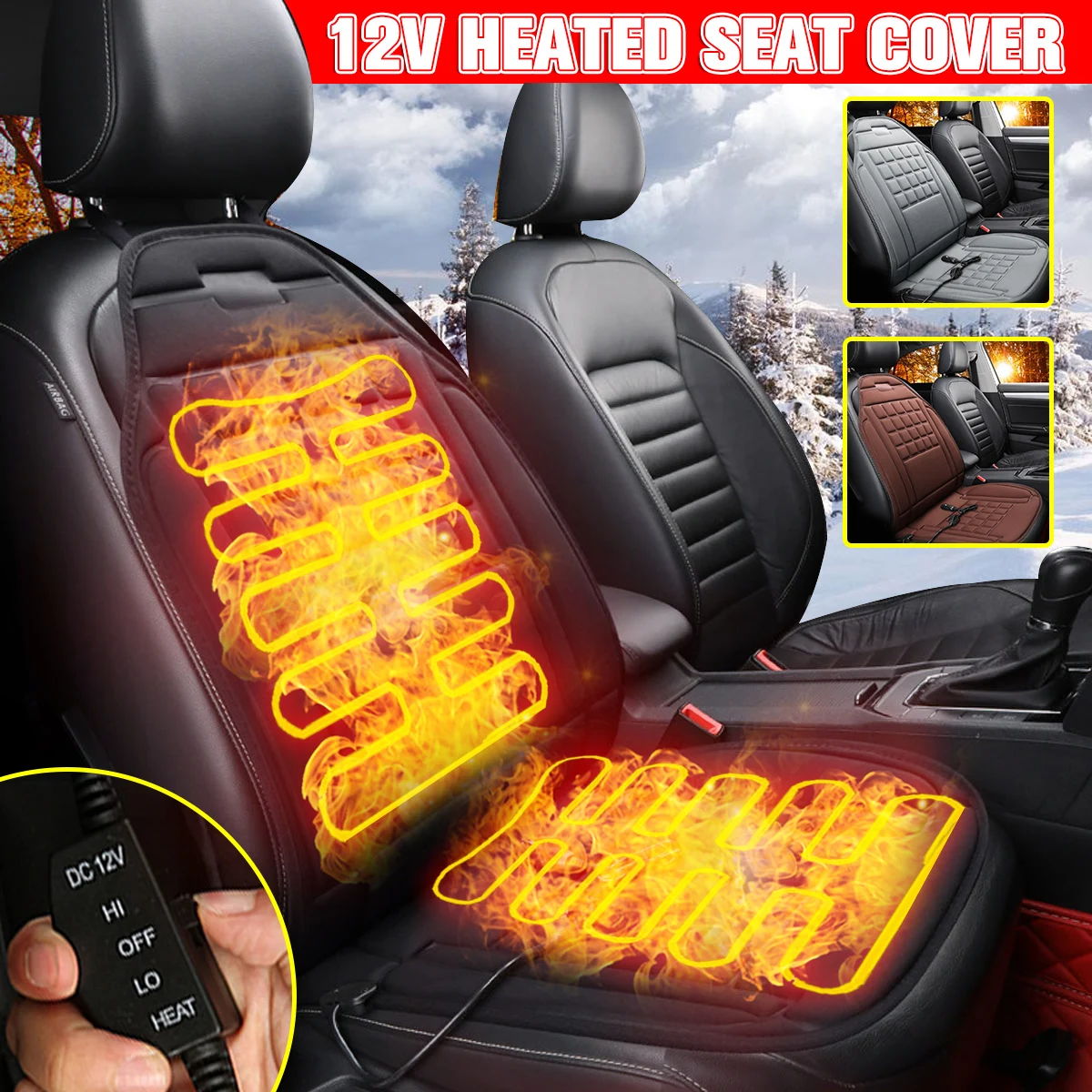 Product Name: 12V Universal asiento delantero del coche caliente espesamiento funda de cojín calentador de invierno calentador de calefacción eléctrica almohadilla negra 1 unid 2 uds