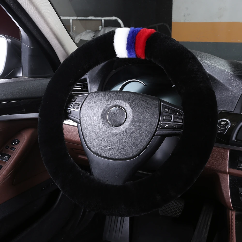 Special Offer Funda para volante de coche de piel de oveja de lana de cordero Natural para adultos Auto Universal con nuevo diseño Bandera de Rusia Color Discount 40% Today!