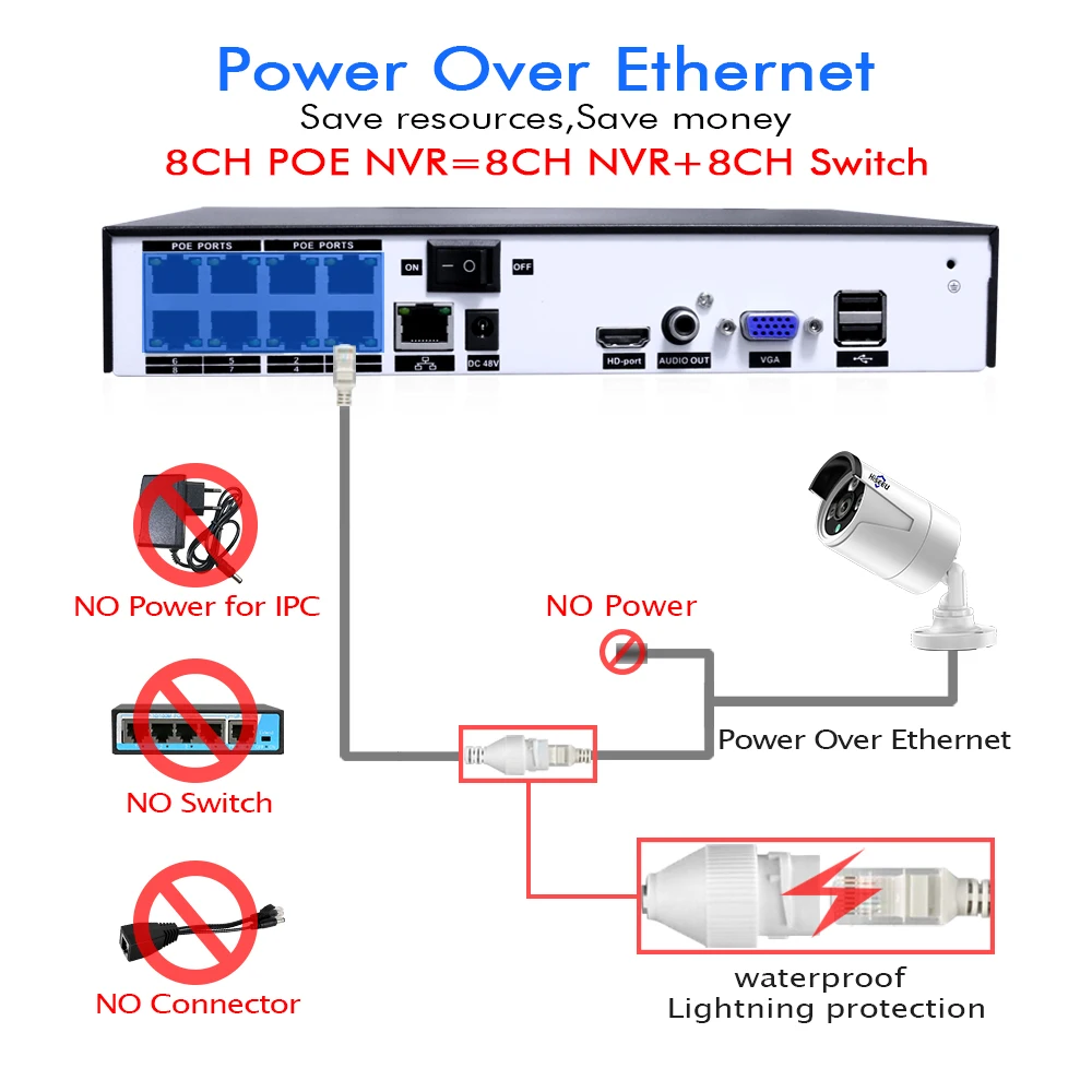 Product Name: Hiseue H.265 8CH 4MP POE sistema de cámara de seguridad Kit de grabación de Audio IP Cámara IR al aire libre impermeable CCTV Video Vigilancia Conjunto NVR