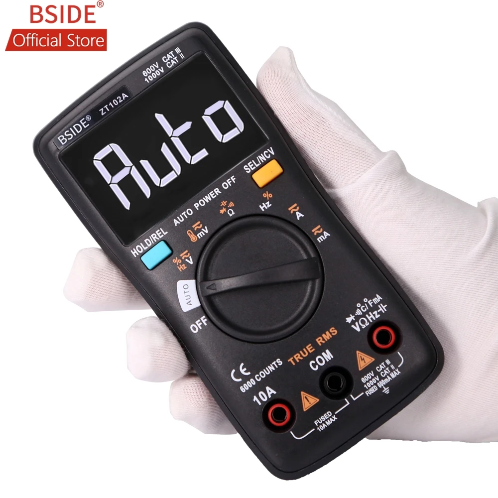 Product Name: Multímetro Digital BSIDE ZT102A EBTN LCD trms CA CC voltaje corriente temperatura Ohm frecuencia diodo resistencia capacitancia probador