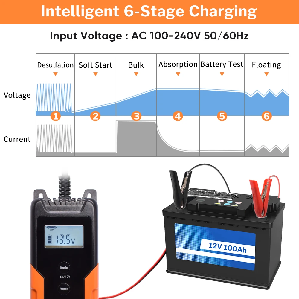 Special Offer Cargador de batería de coche automático Deelife 12 V mantenimiento de reparación de pulso automático inteligente carga de goteo para Moto 6V 12 V Discount 54% Today!