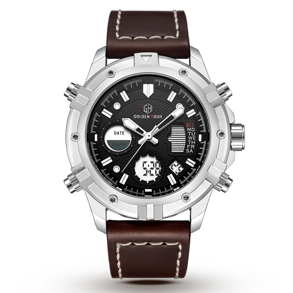 Special Offer Relojes para hombre GOLDENHOUR reloj Digital analógico de cuarzo de lujo para hombre reloj de pulsera deportivo militar de cuero para hombre reloj Masculino Discount 91% Today!