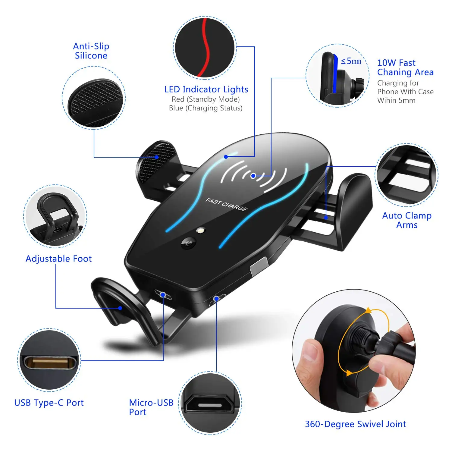 Product Name: Cargador de coche inalámbrico rápido Qi de 10W con sujeción automática para Blackview BV9800 BV9700 BV9600 Pro BV5800 Pro BV9600 Plus BV6800 Pro Holder