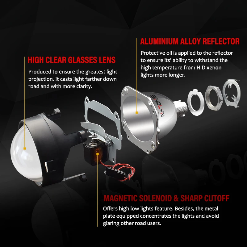 Product Name: Lente de faro Sinolyn 2,5 H4 H7 lente bi xenon Mini proyector HID para Auto luces de coche accesorios retroajuste uso H1 lámpara de xenón