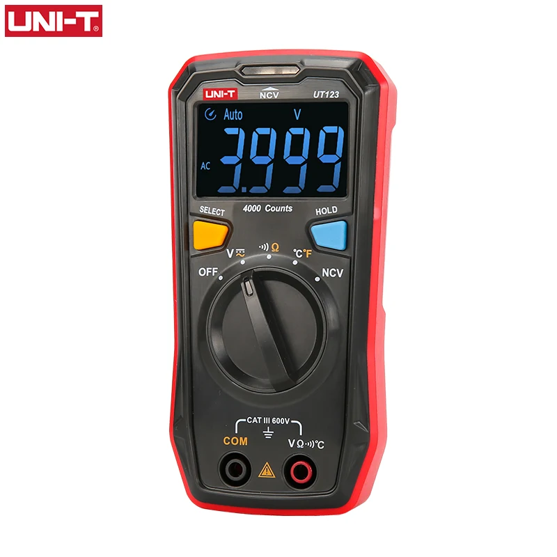 Product Name: UNI T de rango automático Mini multímetro Digital medidor de temperatura UT123 almacenamiento de datos voltímetro de CA CC voltaje de bolsillo amperos ohmios Metro
