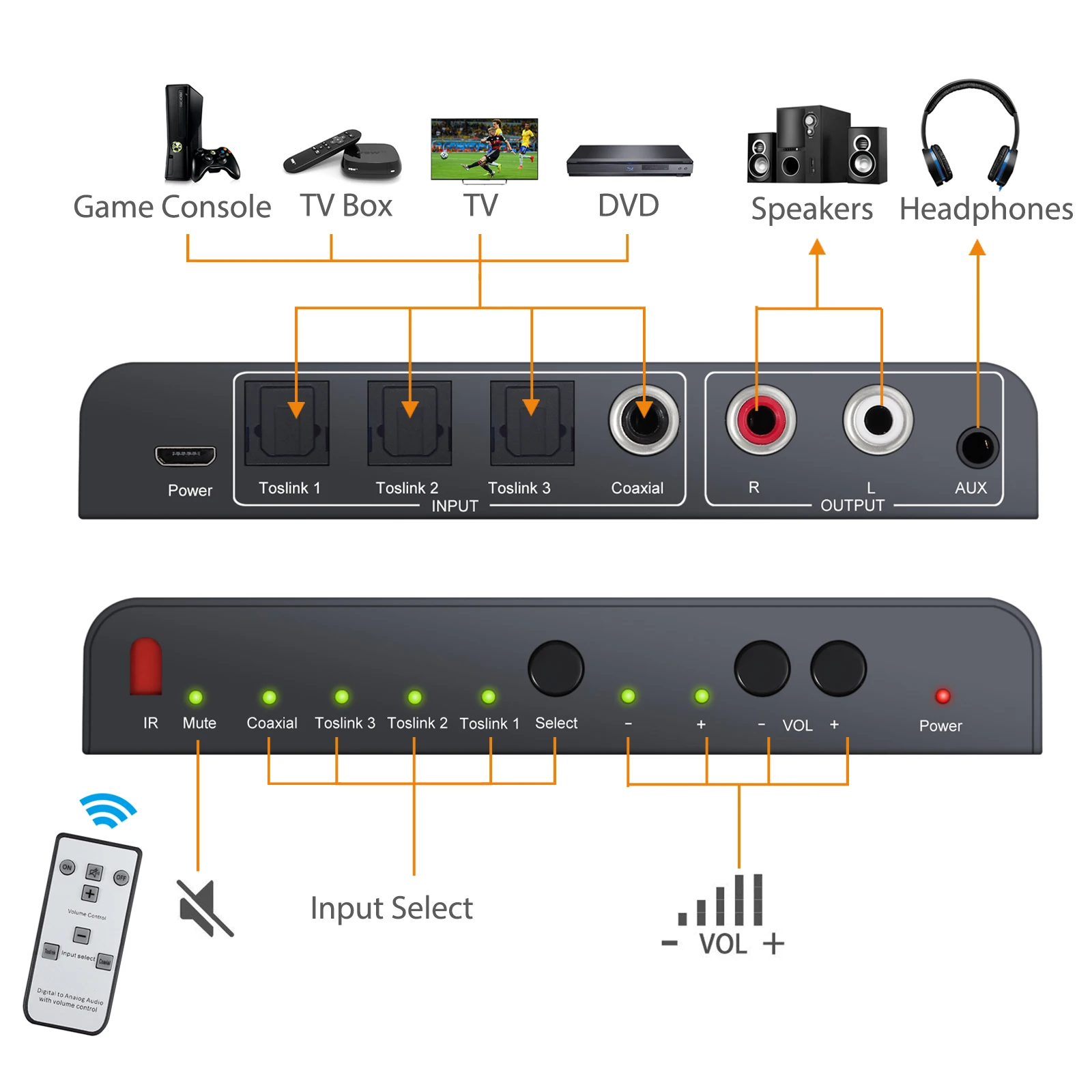 Product Name: Neoteck 3 Optical SPDIF Toslink un conmutador Coaxial DAC convertidor de Audio Digital a analógico con Control de volumen de soporte remoto IR