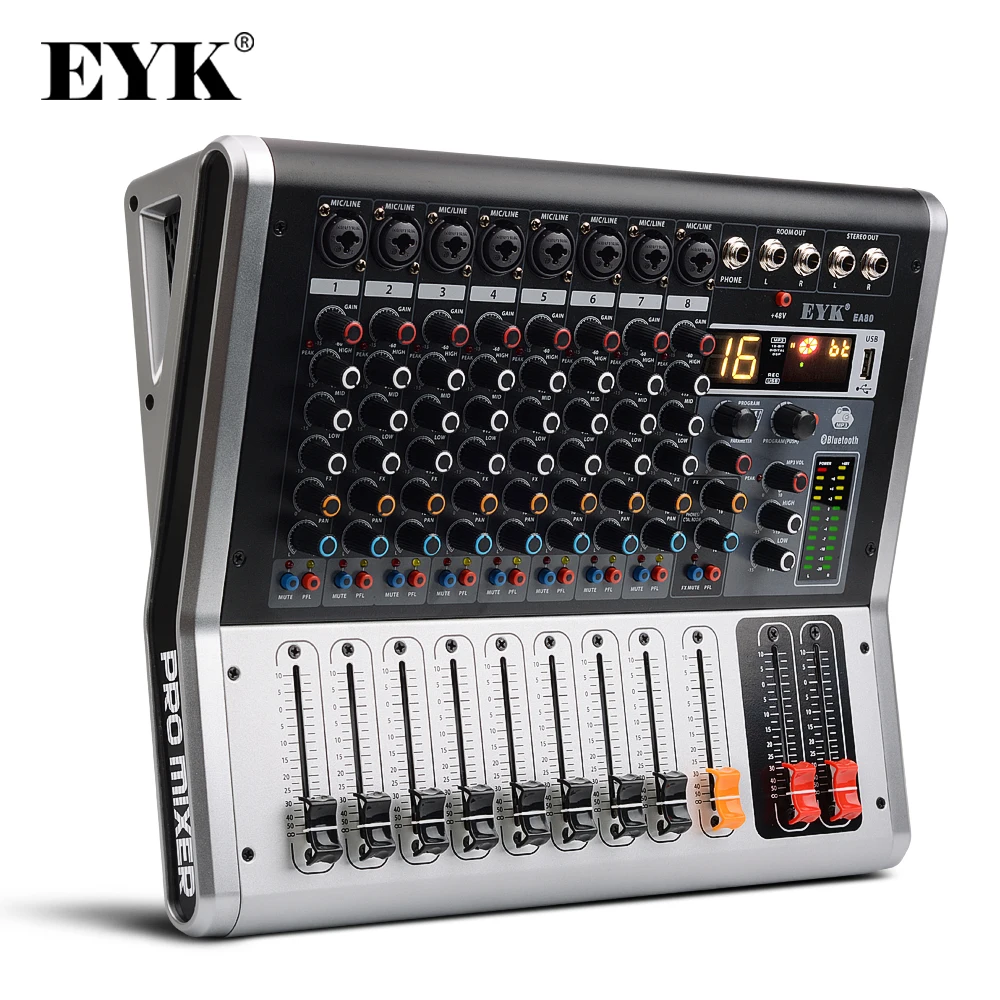 Product Name: EYK EA80 8 canales consola de mezcla con Mute y PFL interruptor Bluetooth registro 3 bandas EQ 16 DSP efecto mezclador de Audio USB profesional