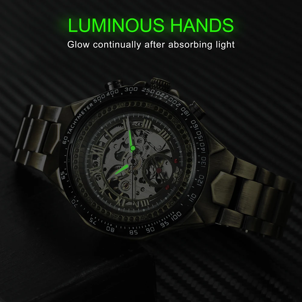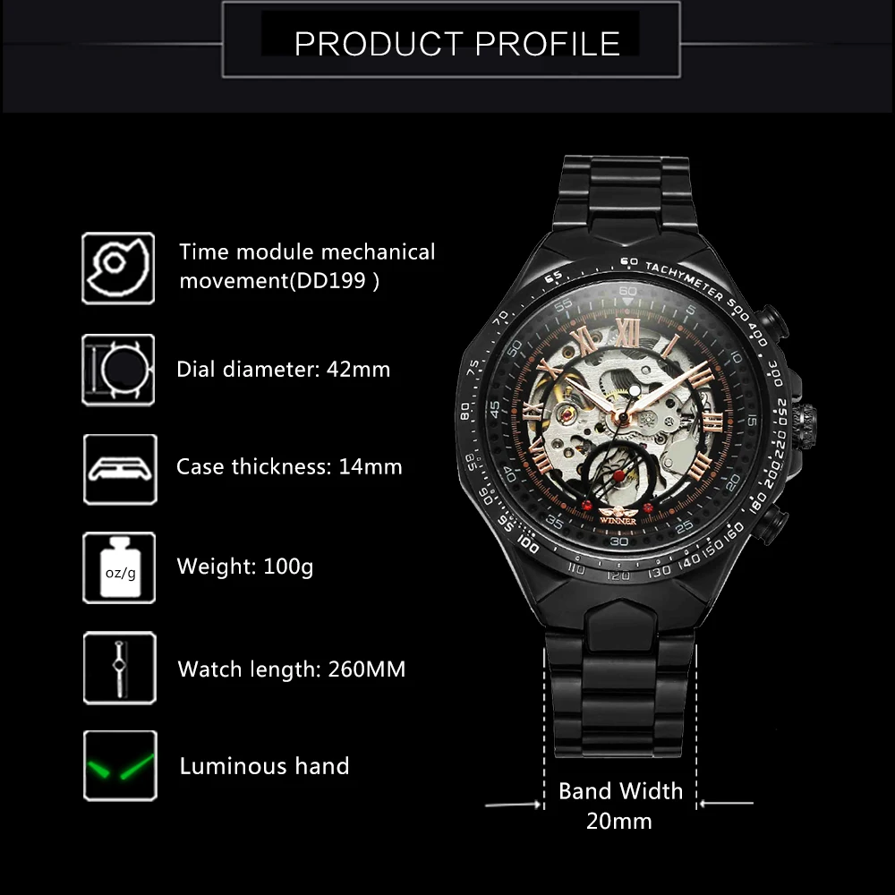 Product Name: El ganador de los relojes para hombre marca superior de lujo automático mecánico esfera dorada esqueleto correa de acero inoxidable moda clásica reloj de pulsera 2019