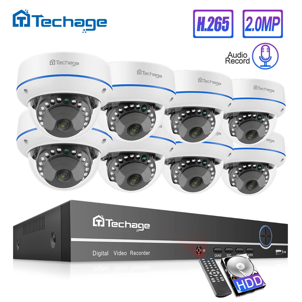 Product Name: Techage H.265 8CH 1080P POE NVR Kit CCTV sistema de seguridad en la casa 2MP de Audio interior Dome IP de la cámara de vídeo de vigilancia de 2TB HDD