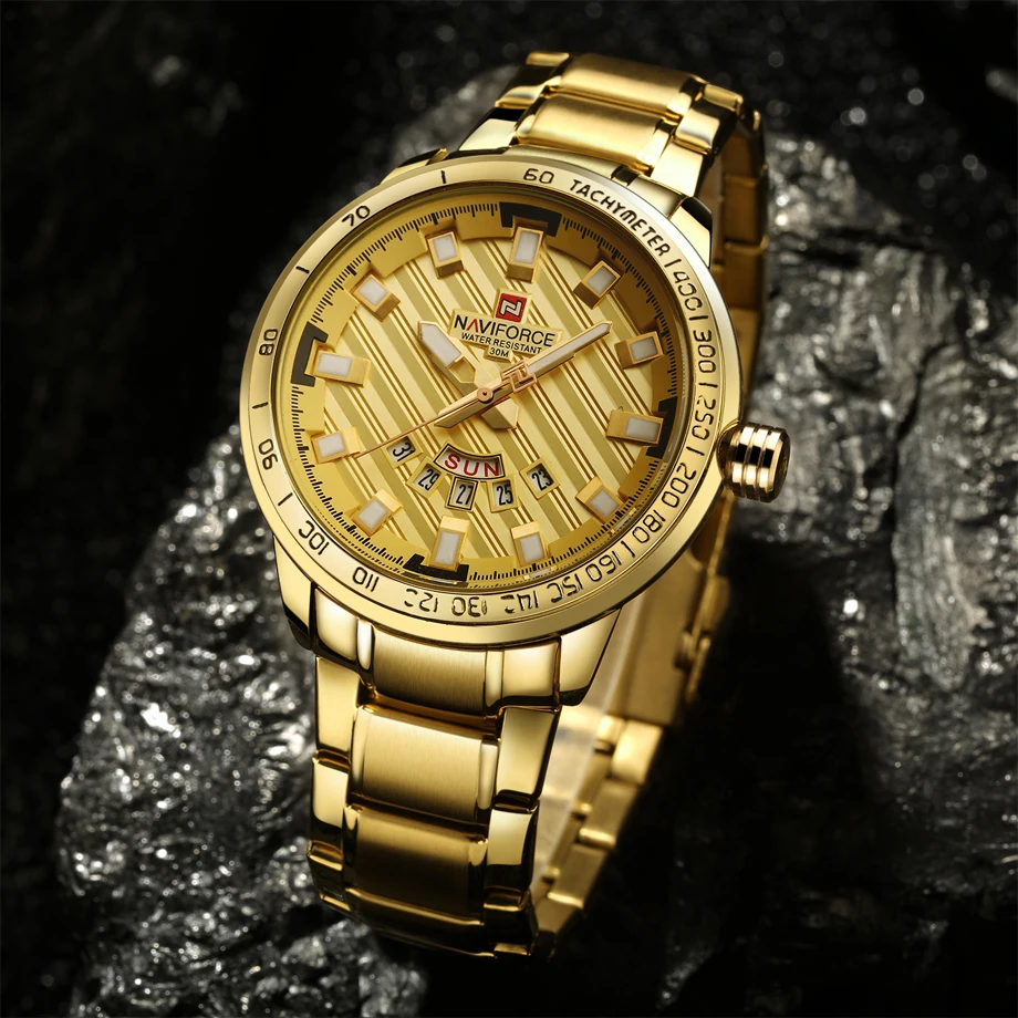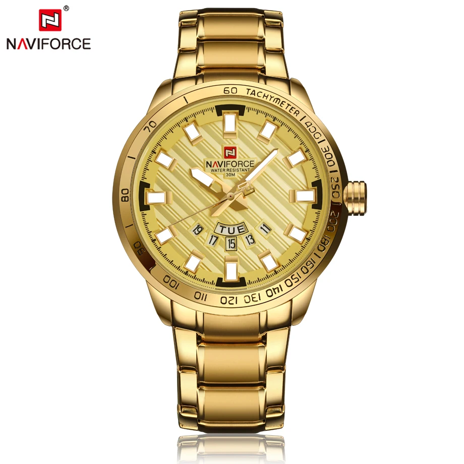 Product Name: Nuevo reloj de pulsera para hombre, de acero, dorado, resistente al agua, reloj de cuarzo para hombre, hora militar, reloj Masculino