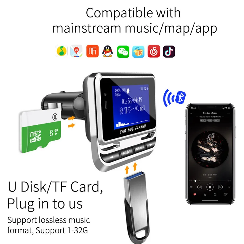 Product Name: Cargador USB transmisor Fm FM12B Kit de coche Bluetooth inalámbrico de Bluetooth Mp3 jugador iPhone 7 para iPhone 7Plus 6S 6 y Android