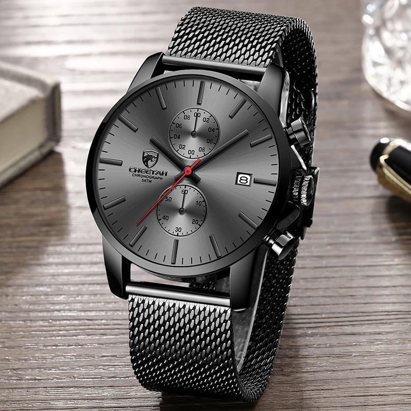 Product Name: Marca CHEETAH reloj de pulsera de cuarzo de moda de negocios reloj de pulsera de malla de acero inoxidable reloj de hombre reloj de fecha reloj Masculino