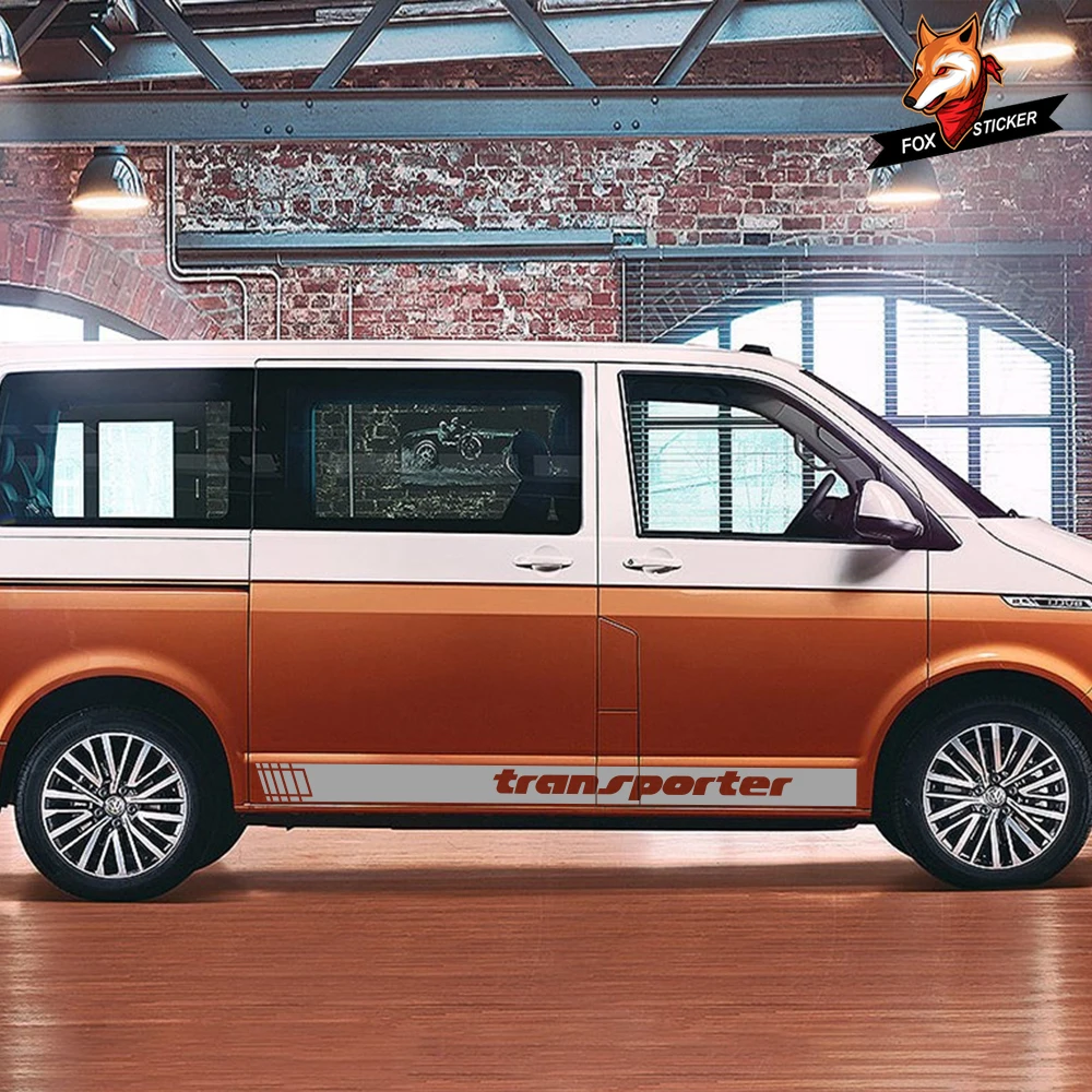 Product Name: 2 uds. Puerta del coche falda lateral rayas gráficas calcomanías Auto decoración pegatinas accesorios para Volkswagen VW Transporter Multivan T4 T5 T6