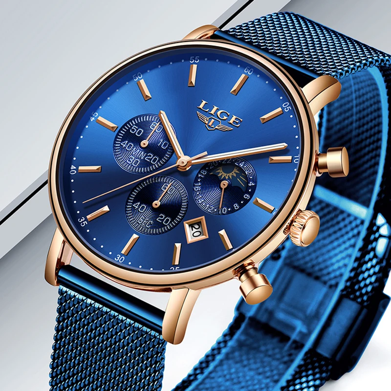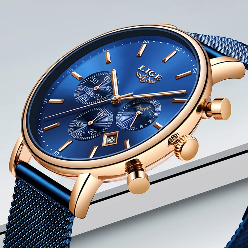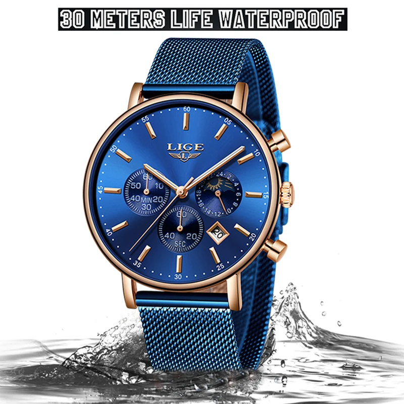 Product Name: Relojes LIGE para hombre de marca superior de lujo azul Casual correa de malla reloj deportivo de moda hombres reloj de cuarzo impermeable reloj Masculino