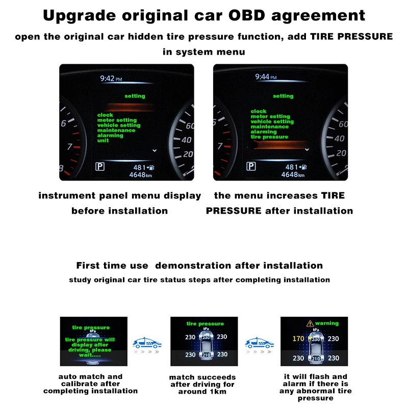 Product Name: Control de presión de neumáticos OBD TPMS + bloqueo automático de velocidad para Nissan new Teana new x trail new Tiida Kick Venucia T70 T70X
