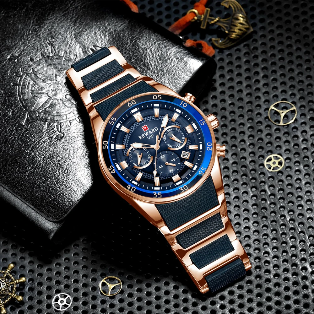 Special Offer Relojes para hombre de marca de recompensa reloj de cuarzo azul de lujo reloj de pulsera de acero completo para hombre reloj de pulsera de negocios impermeable reloj Masculino Discount 49% Today!