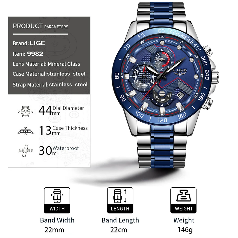 Product Name: Reloj Masculino 2019 nuevos relojes para hombre, marca de lujo LIGE, cronógrafo, relojes deportivos para hombre, reloj de cuarzo resistente al agua, de acero