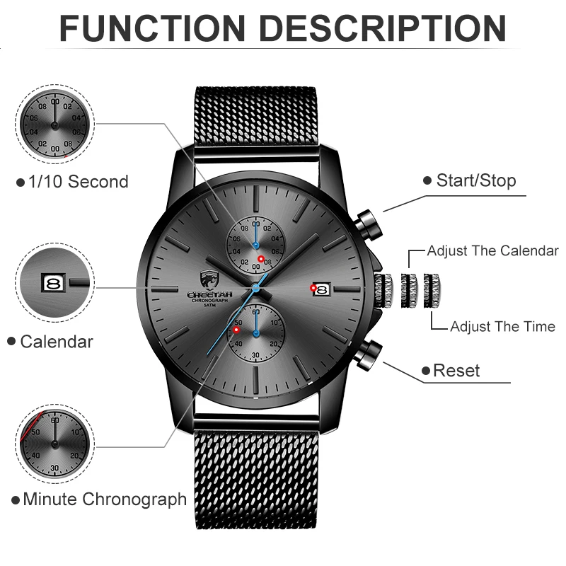 Product Name: CHEETAH relojes para hombre marca de lujo superior moda Acero inoxidable hombres de negocios reloj de pulsera deportivo Casual masculino reloj impermeable