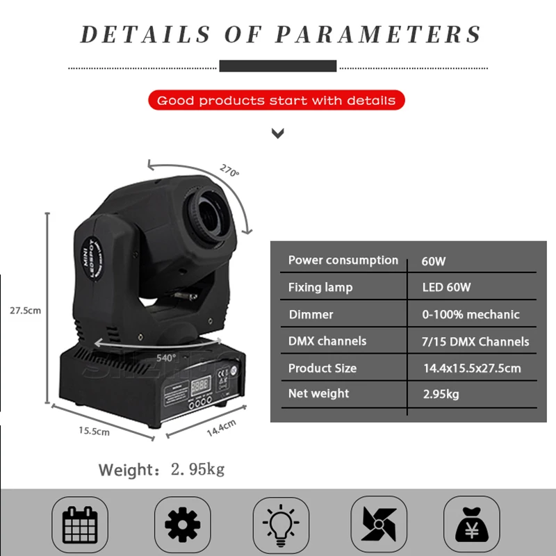 Product Name: 2 uds. 60w Led foco 7 Gobos luz principal móvil DMX 9 11 canales luz Master Slave funcionamiento automático controlador de sonido envío rápido