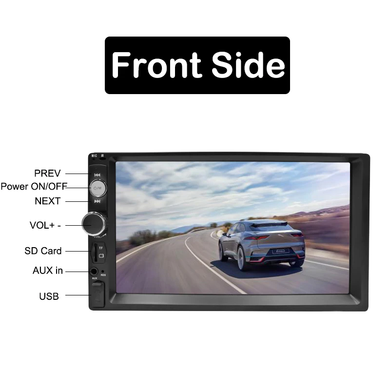 Product Name: 2DIN Radio coche 7 \"HD Autoradio Multimedia Player 2 Din de pantalla táctil Auto Audio estéreo de coche MP5 Bluetooth TF USB FM Cámara Android