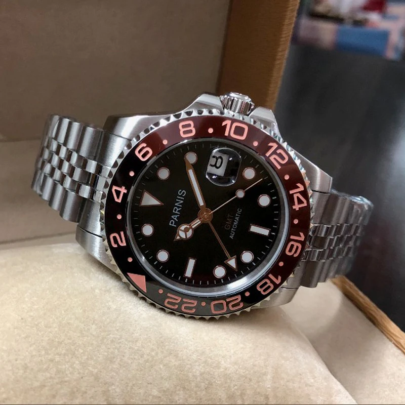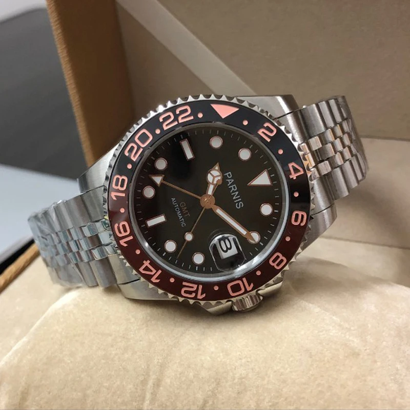 Product Name: Parnis 40mm relojes mecánicos automáticos para hombre GMT cristal de zafiro 2019 reloj de hombre buceador reloj de lujo reloj