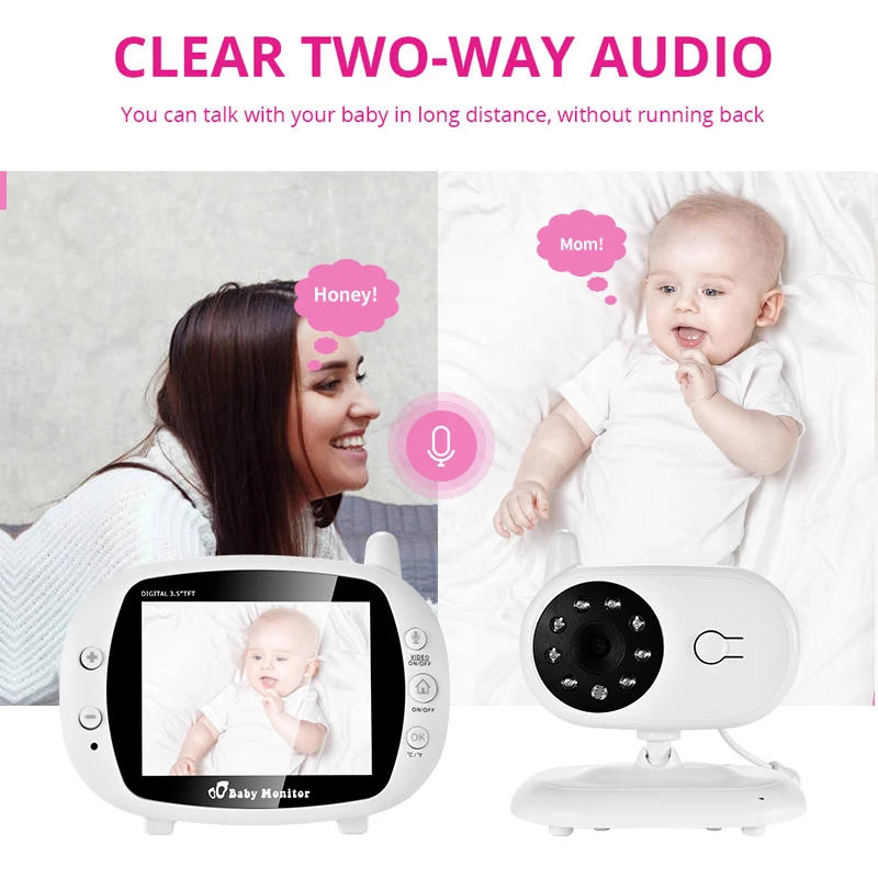 Product Name: Monitor de bebé inalámbrico de 3,5 pulgadas cámara de seguridad VOX Nanny visión nocturna IR llamada de voz Babyphone con monitorización de temperatura