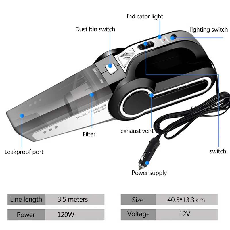 Product Name: 4in1 4000pa potente aspiradora de coche 120W Wet Dry Auto aspiradora portátil Mini aspiradora de mano limpiador para el hogar del coche