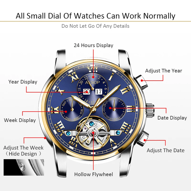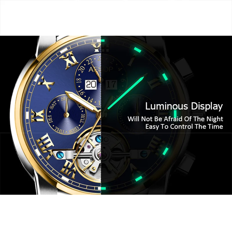 Product Name: Reloj de pulsera automático AESOP para hombre, reloj de esqueleto Tourbillon, relojes mecánicos de acero inoxidable, reloj Masculino, reloj Masculino