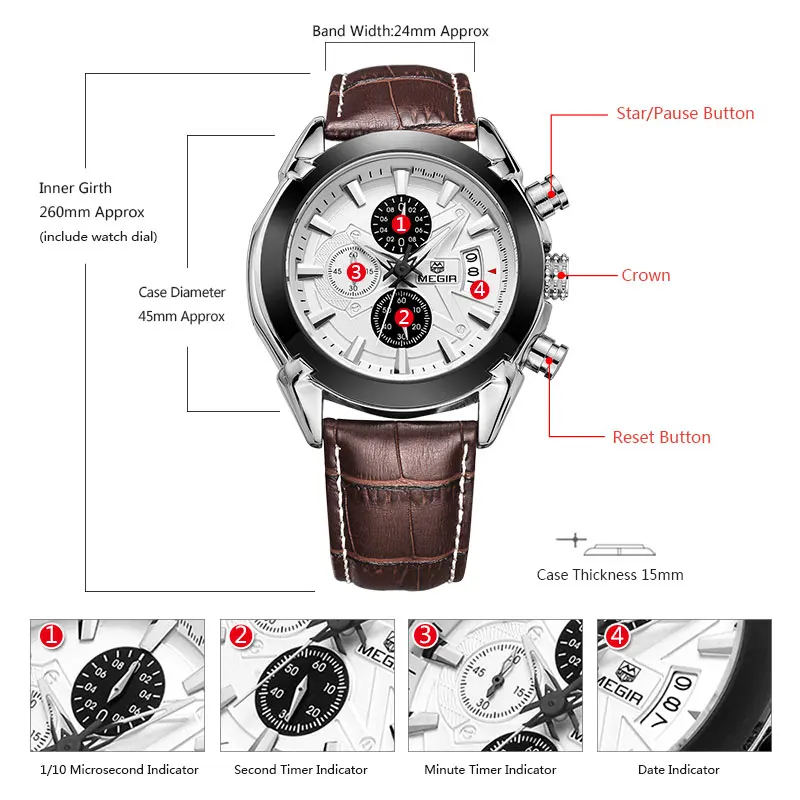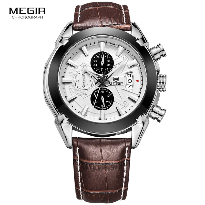 Product Name: reloj megir de moda, deportivo, de cuarzo, de cuero, para hombre. Cronógrafo militar, relojes de pulso para hombre, estilo militar 2020, envío gratuito