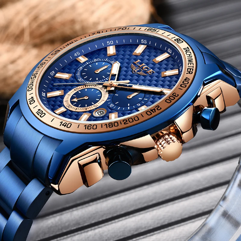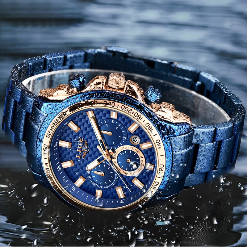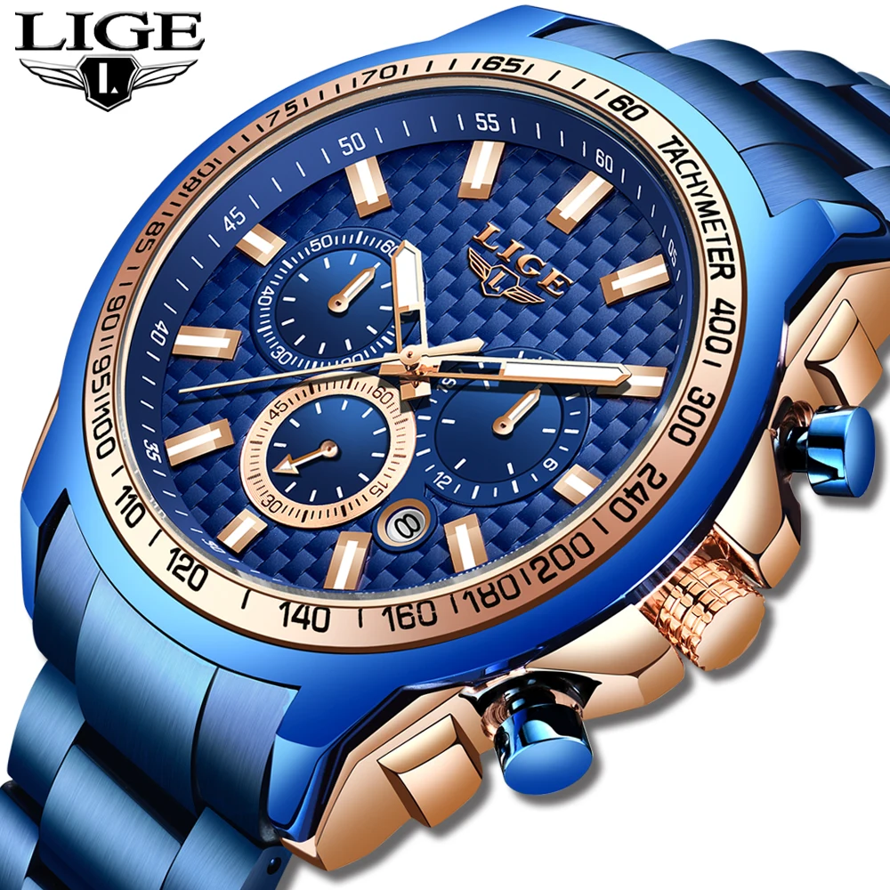 Product Name: LIGE 2020 nuevo reloj azul de moda, relojes para hombres reloj de lujo de marca superior reloj de cuarzo cronógrafo militar para hombre reloj Masculino
