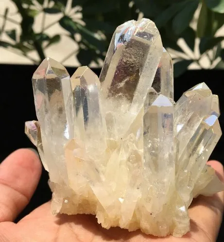 Product Name: 200g raro hermosa llama blanca aura cristal de cuarzo grupo de muestras