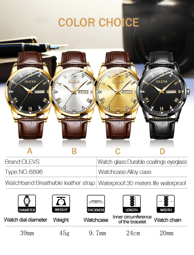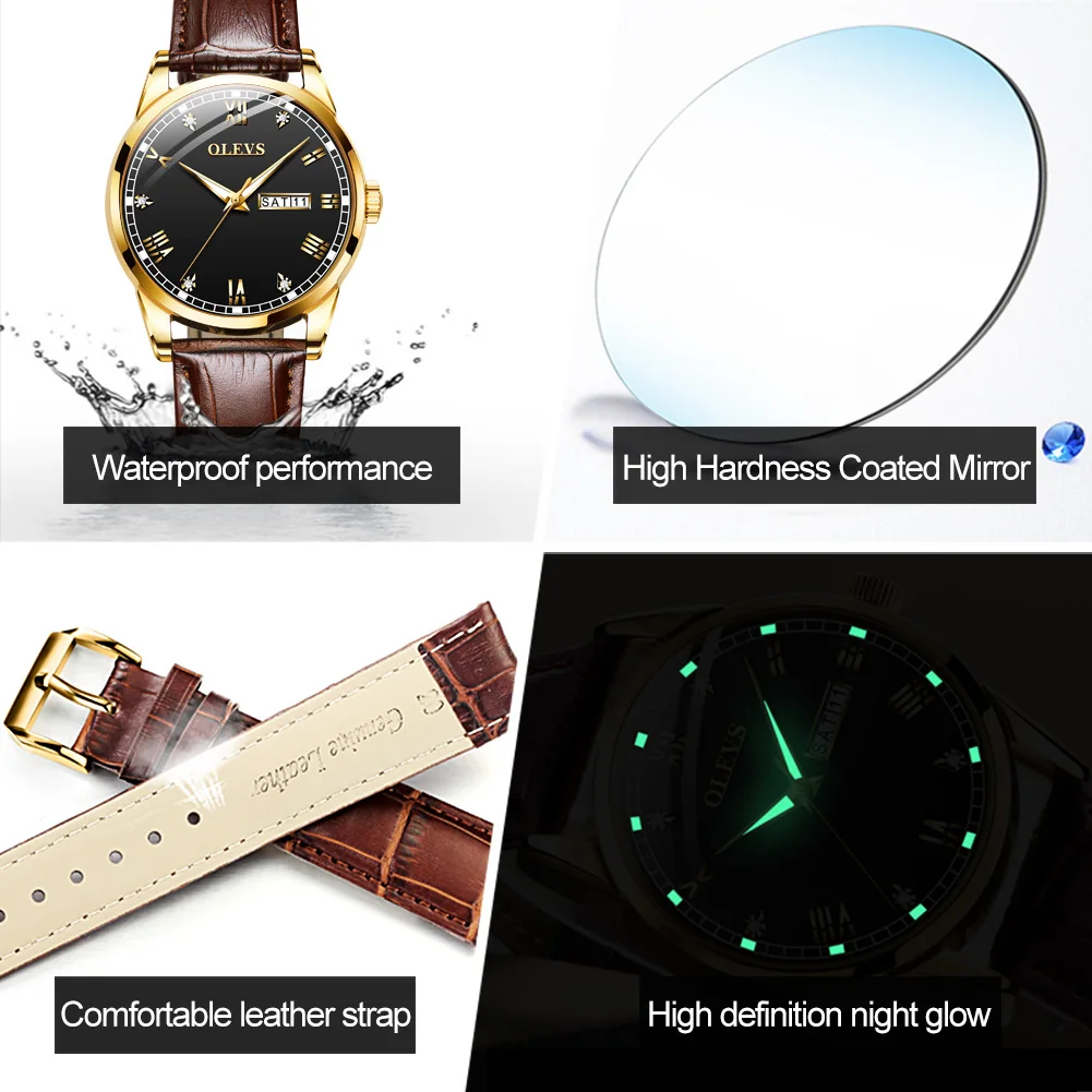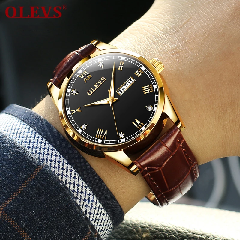 Product Name: Reloj de OLEVS para hombre, de cuero marrón, cuarzo, calendario de fecha automática, marca Original, reloj de pulsera de negocios resistente al agua, moda masculina