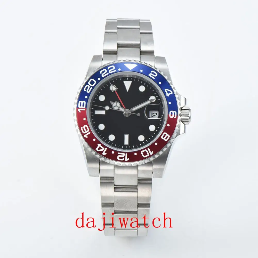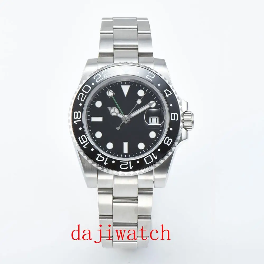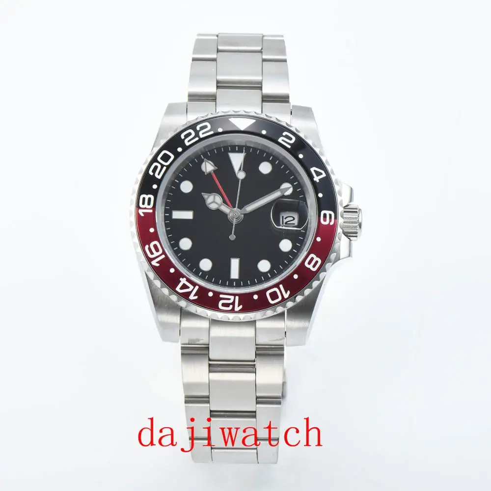Product Name: 40mm PARNIS preto esfera luminosa safira moldura de cerâmica GMT relógio dos homens automatic de Luxo Da Marca superior relógio Mecân