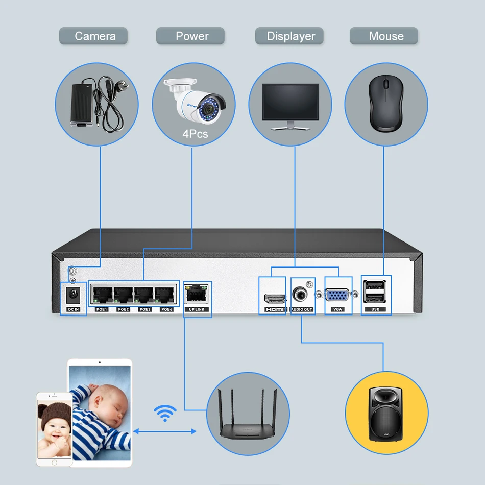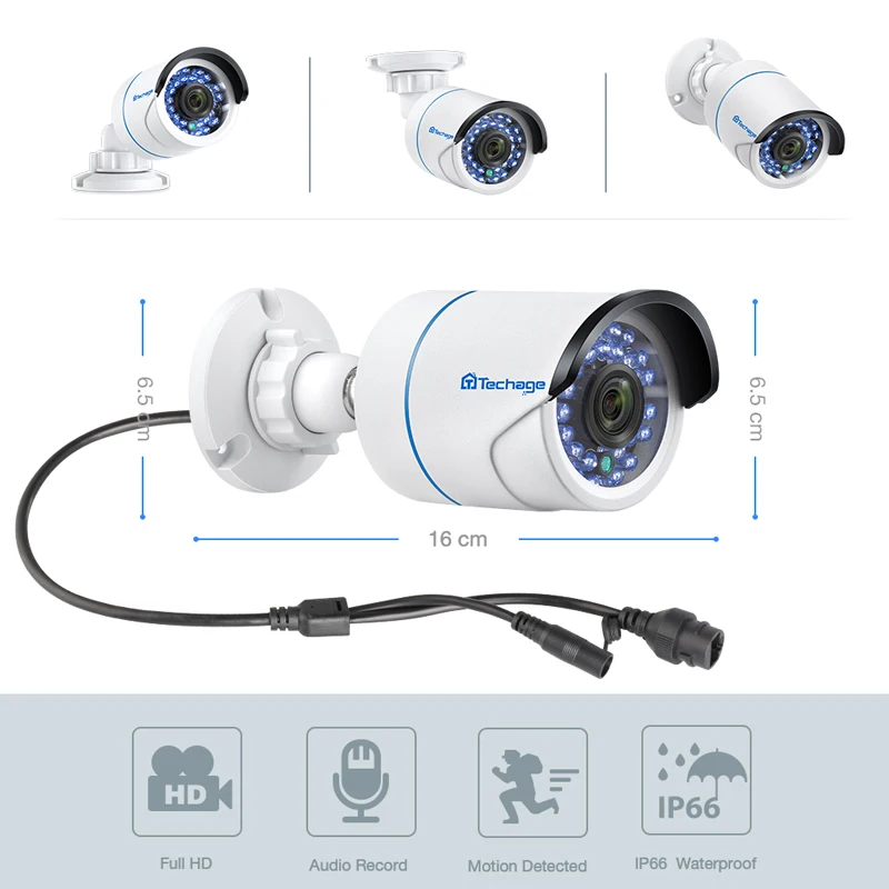 Product Name: Techage H.265 4CH 1080P POE NVR Kit CCTV sistema de seguridad 2.0MP Audio micrófono IP Cámara IR Video vigilancia al aire libre conjunto