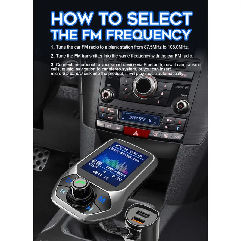 Product Name: Pantalla a Color para coche reproductor de música Mp3 receptor Bluetooth transmisor FM salida de Audio Aux cargador USB doble para coche